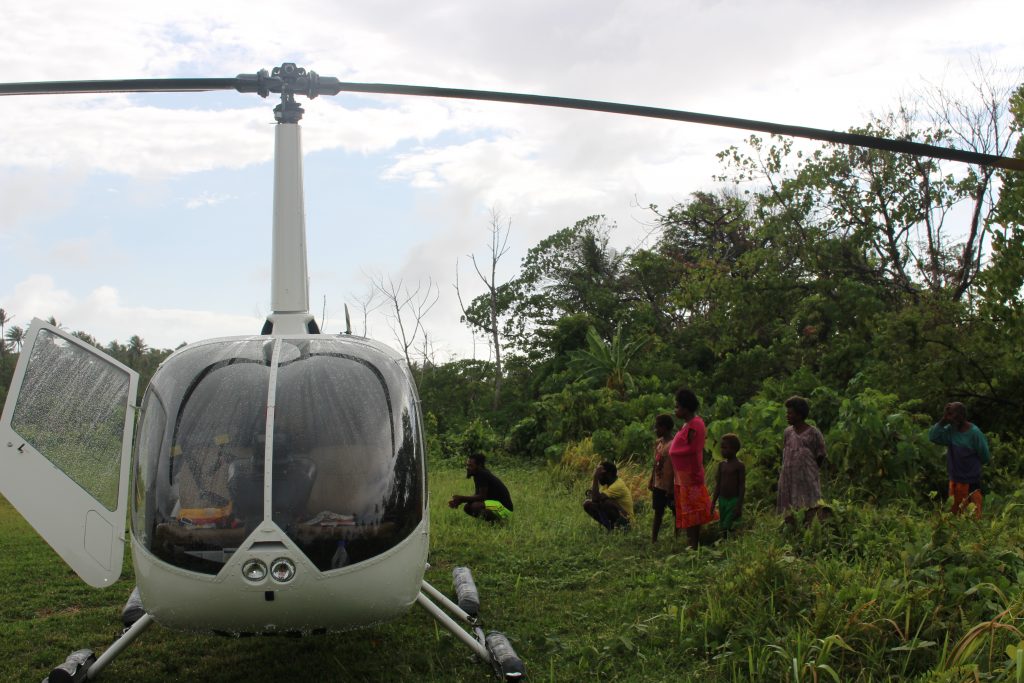 Saturday came around and we were now onto our third day at Ulei. We were all lethargic and ready to go, but found ourselves once again passing the time by sleeping, chatting with the locals and keeping the malarial mozzies at bay. Just before midday, my sat phone buzzed. It was a message from Geoff informing us that fuel had arrived and they’d be back down within a couple of hours. Hooray! And sure enough, the noise we had all been dreaming about suddenly became a reality…the helicopter had returned.