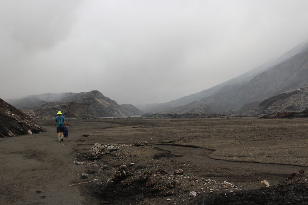 The environment was harsh. A small wind change would send choking SO2 gas our way. Thankfully our respirators worked well. The wind would send lapilli flying and would get everywhere. Torrential rain was on a 10 minute timer. 10 mins on and then 10 mins off.