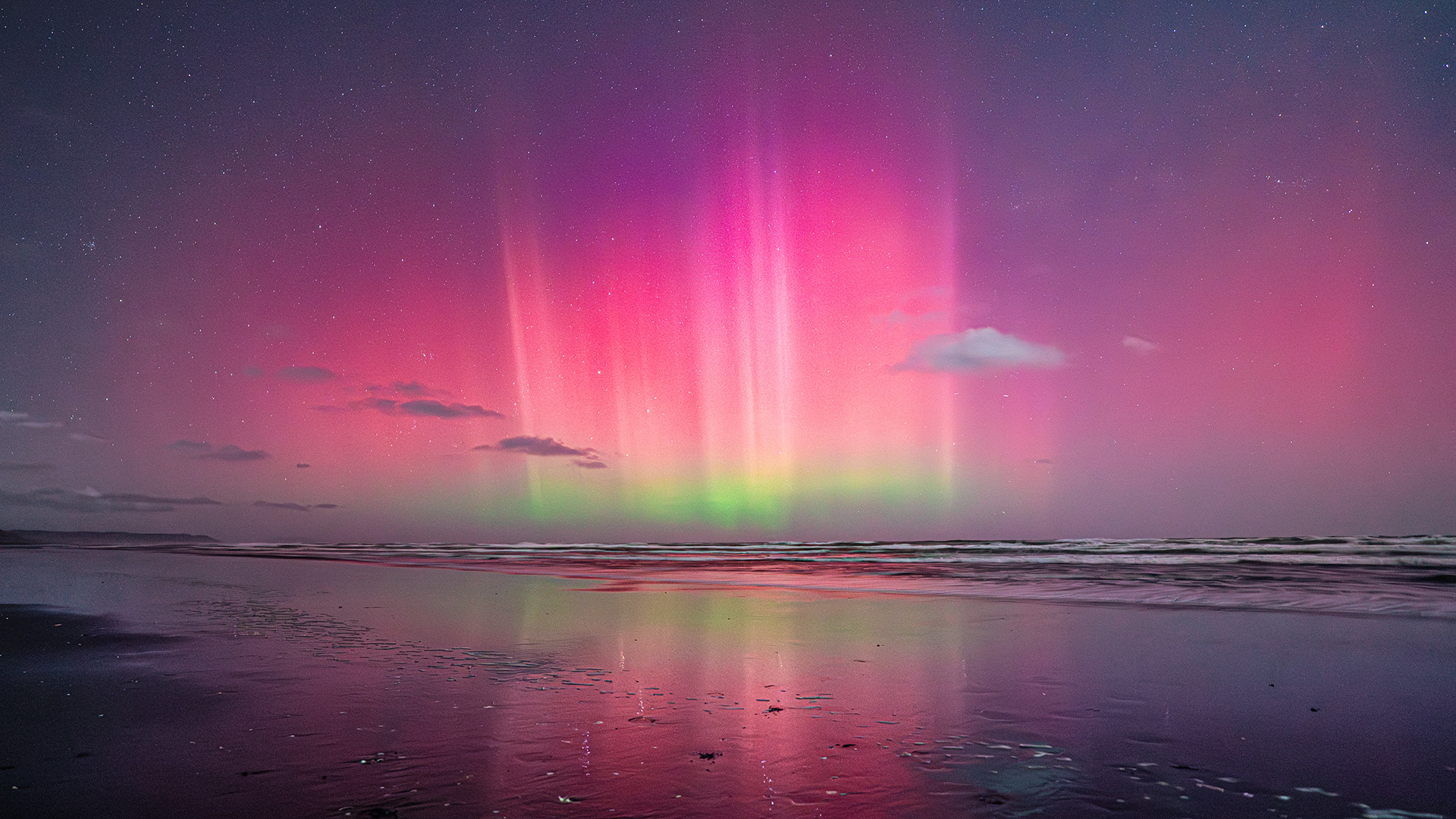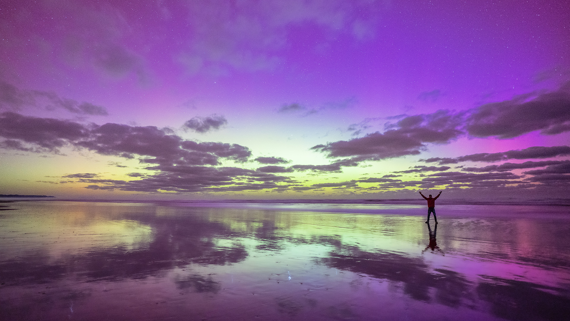 If you’re able to get a calm night on the West Coast beaches, the still water creates a stunning reflection, capturing so many colors – May 2024.