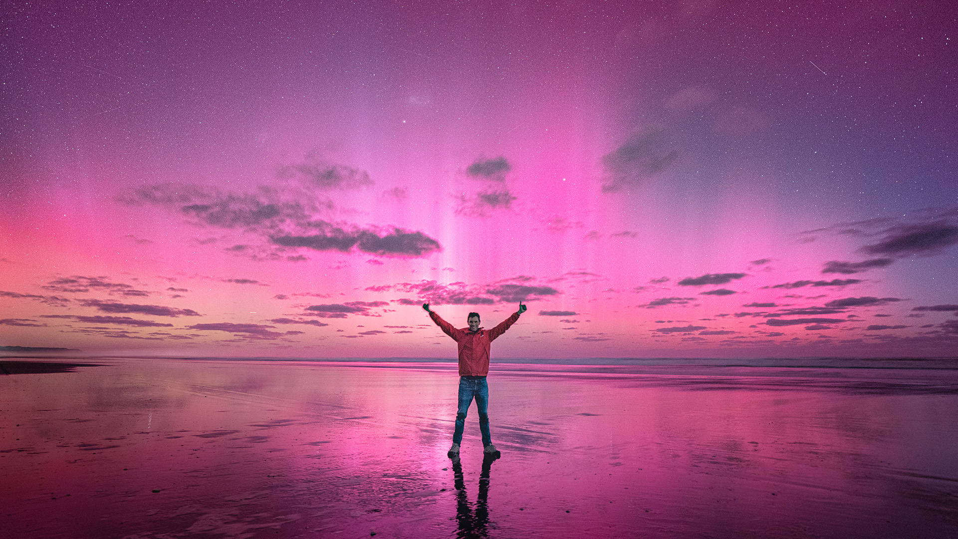 Stunning purple beams captured on Auckland’s West Coast during the May 11 Solar Storm. That was the most intense and prolonged solar storm I’ve ever seen. It painted the sky with incredible beams and a full spectrum of colors, from sunset and throughout the night.