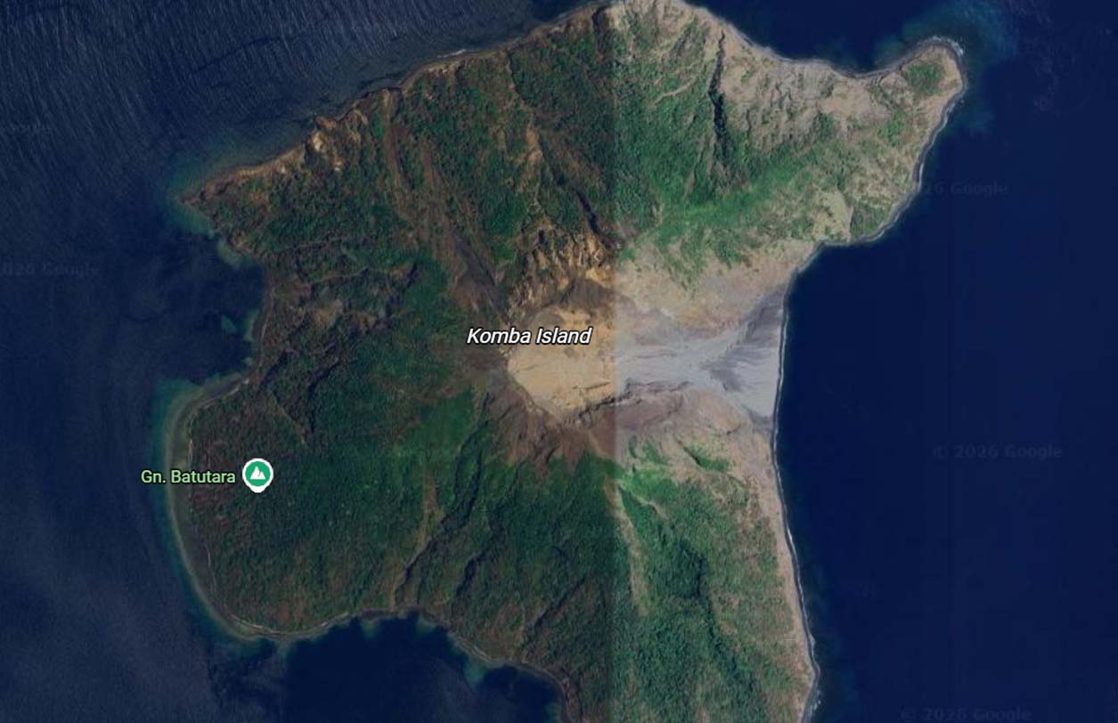Batu Tara is a stratovolcano located on the small isolated island known as Komba. It has a large central summit crater 900 x 700 meters in diameter, often giving impressive displays of strombolian eruptions. The volcano’s eruptive activity has currently ceased.
