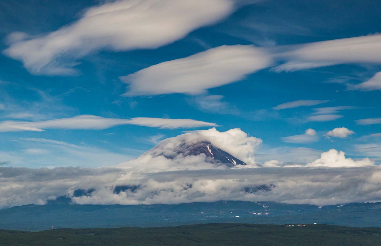 Karymsky is the most active stratovolcano of Kamchatka’s eastern volcanic zone. It is located on the Kamchatka Peninsula, Russia and it remains one of the world’s volcanoes with persistent activity. Much of its cone is surrounded by lava flows.